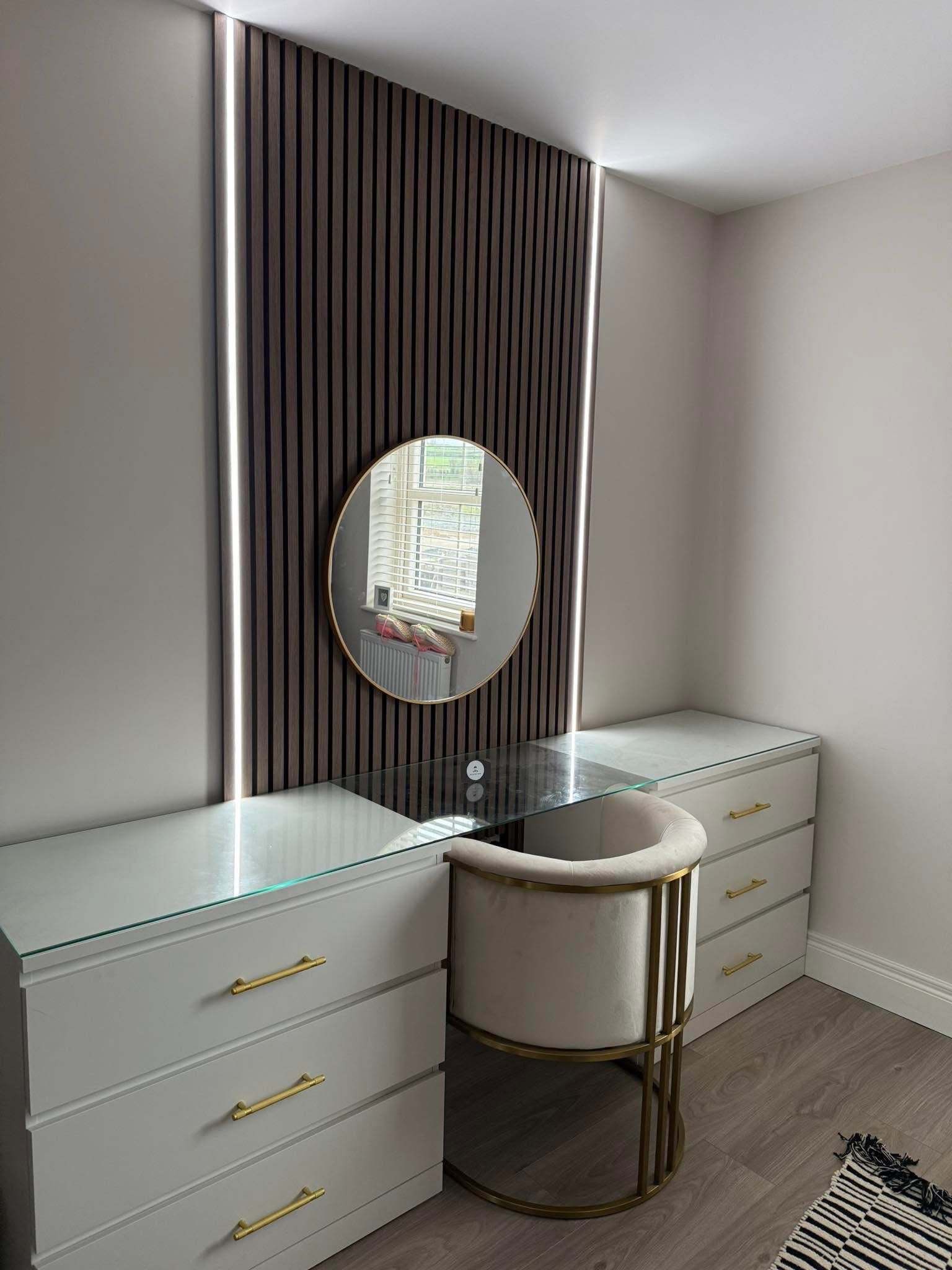 Welcome to The Flat Pack Man NI, your trusted supplier and fitter of premium quality Akupanels in Northern Ireland. Whether you're located in Newtownards, Bangor, Holywood, Belfast, Newtownabbey, Lisburn, or beyond, we have got you covered. With our extensive experience and excellent customer satisfaction, you can trust us to provide top-notch slatwall panels / AkuPanels for bedrooms, living room, kitchen, office & more.